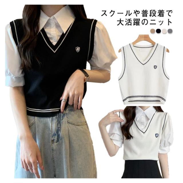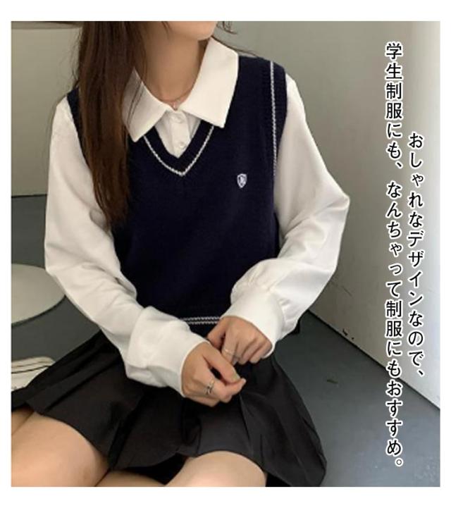 ニットベスト レディース Vネック ライン スクールベスト 女子 学生 制服 スクールセーター 高校生 中学生 学生服 通学 ノースリーブ 学校 韓国 ファッション 袖なし 無地 カジュアル プルオーバー 送料無料