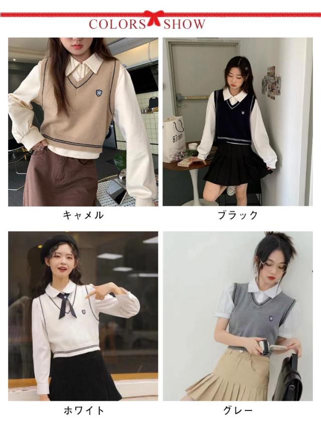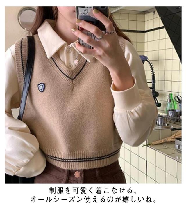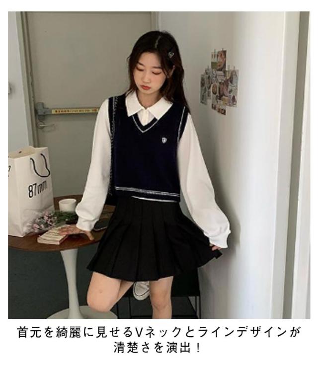 | スクールや普段着で大活躍のニット。 制服を可愛く着こなせる、オールシーズン使えるのが嬉しいね。 おしゃれなデザインなので、学生制服にも、なんちゃって制服にもおすすめ。 首元を綺麗に見せるVネックとラインデザインが清楚さを演出! シンプルながらも存在感を放ち、ブレザーの中に着ても、一枚で着てもサマになる1枚です。 | |