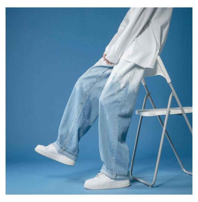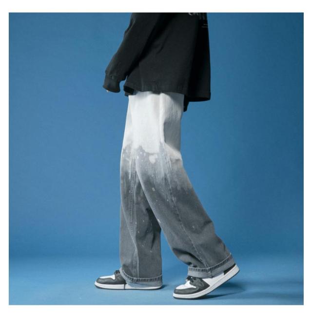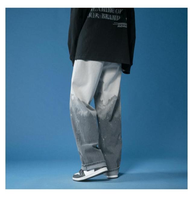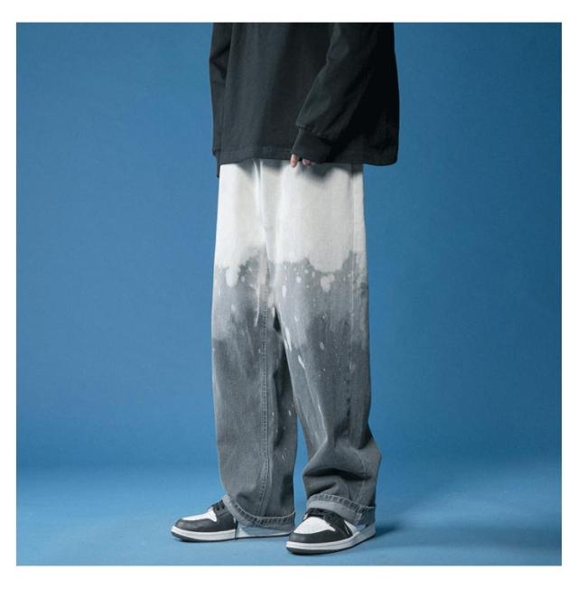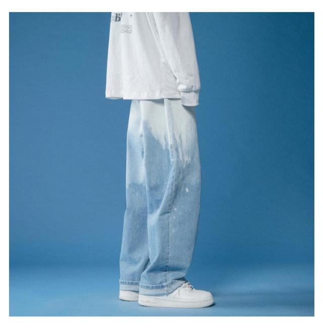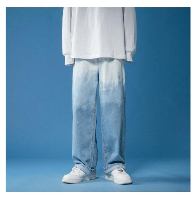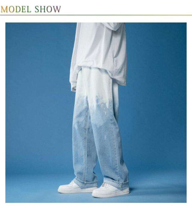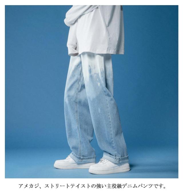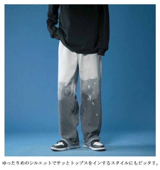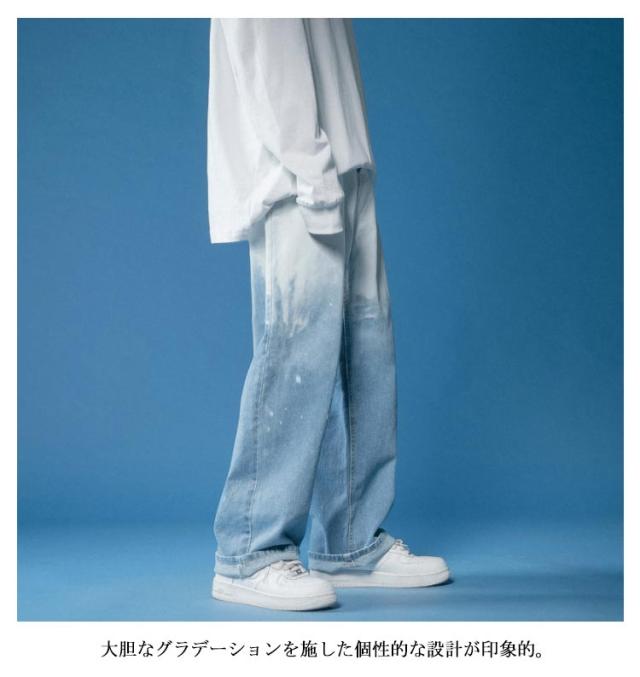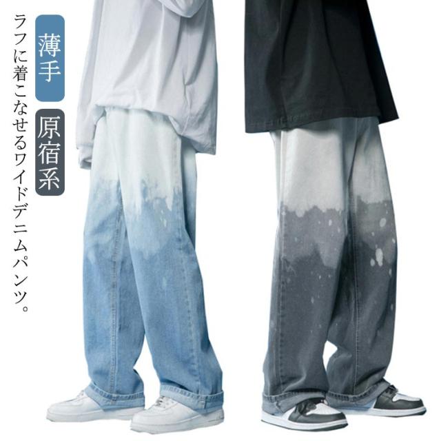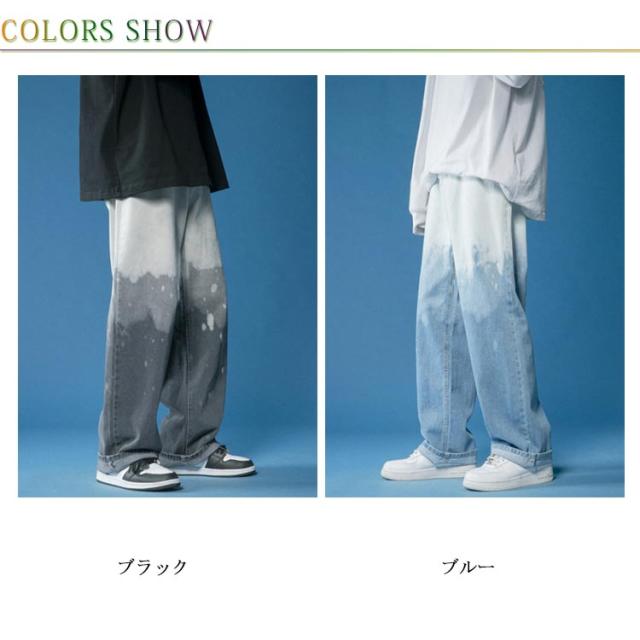デニムパンツ グラデーション メンズ ロングパンツ 大きいサイズ ゆったり タイダイ染め ストレート 薄手 夏 送料無料 ワイド ジーンズ ジーパン ダンス 衣装 ストリート系 原宿系 春夏 ブラック ブルー