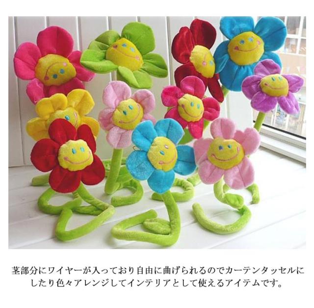| 綿入りフワフワのぬいぐるみのフラワー。 ぬいぐるみなので、お水なし花瓶なしでもずっと飾れるのでプレゼントにもピッタリです♪ 普通の花束とは異なり、笑顔デザインを取り入れることで、遊び心満載で一味違う特別な一品です。 カラフルで可愛いデザイン、ベビーベッドに飾ったり、子供部屋の装飾としたり、癒やしの雰囲気を演出し、気分を高揚させます。 茎部分にワイヤーが入っており自由に曲げられるのでカーテンタッセルにしたり色々アレンジしてインテリアとして使えるアイテムです。 | |