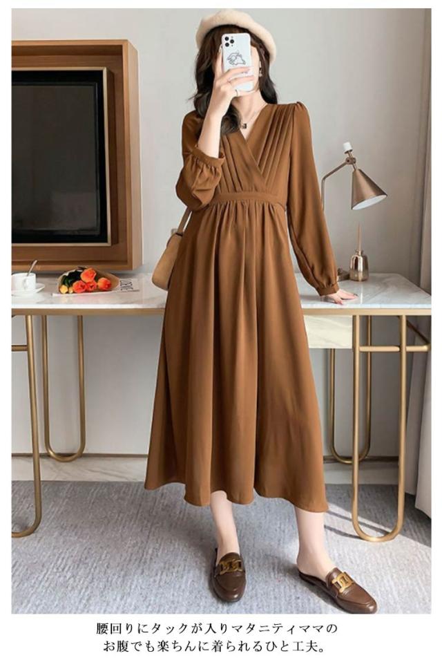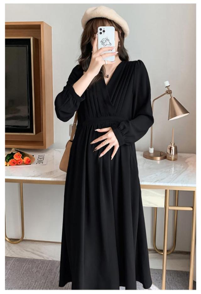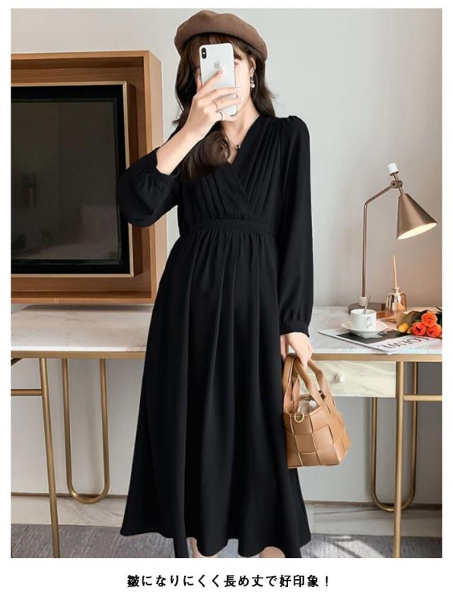 授乳服 マタニティ お宮参り ワンピース フォーマル ロング 長袖 入学式 入園式 卒園式 結婚式 七五三 記念撮影 記念写真 ウエスト調節 秋冬 冬 春 妊婦服 産前産後 臨月 黒 おしゃれ 送料無料 マタニティ 授乳服 ワンピース ドレス パーティードレス