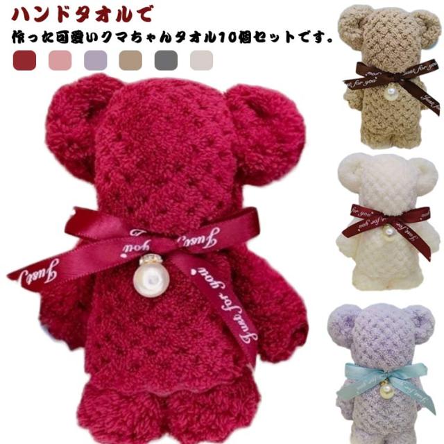 くまタオルセット 10個セット 幸せ運ぶタオルベア くまタオル ラッピング袋付き ハンカチサイズ 子供 ハンドタオル 転勤 異動 職場 産休 感謝 幼稚園 保育園 卒園 卒業 プチギフト 結婚式 退職 かわいい お礼 イベント お返し お見舞い 女性 お祝い 全6色