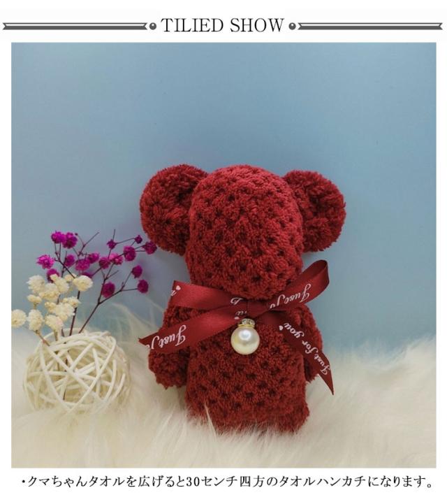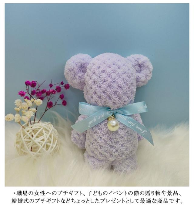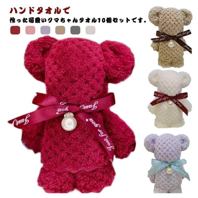 | ・ハンドタオルで作った可愛いクマちゃんタオル10個セットです。 ・クマちゃんタオルを広げると30センチ四方のタオルハンカチになります。 ・ふんわりとしたフリースの様な肌触りで吸水性も良いです。 ・職場の女性へのプチギフト、子どものイベントの際の贈り物や景品、結婚式のプチギフトなどちょっとしたプレゼントとして最適な商品です。 ・色も6色あり、老若男女問わず喜んでいただける商品になっております。 ・ラッピング袋も同梱、透明の袋で簡単にラッピングする事ができます。 | |