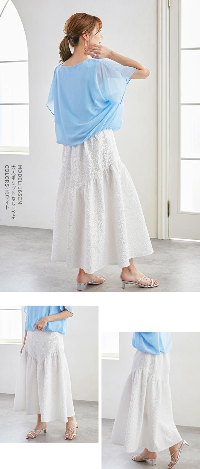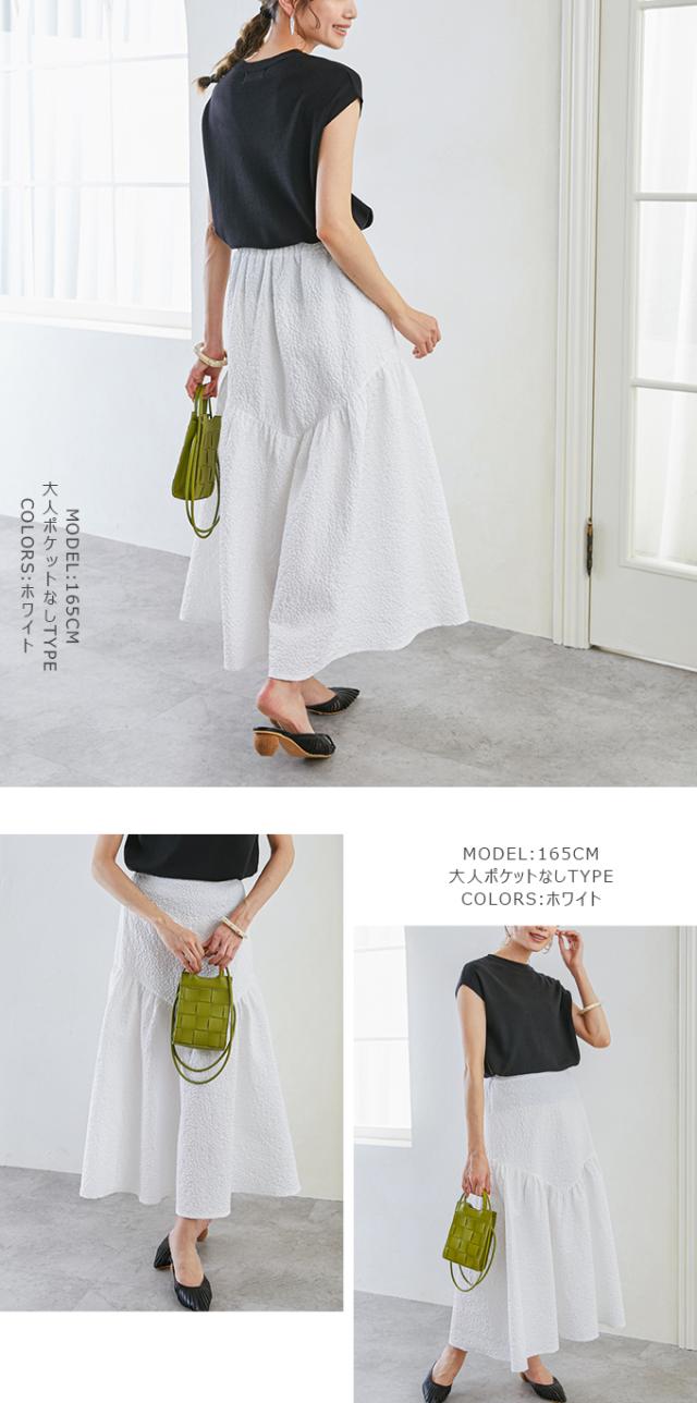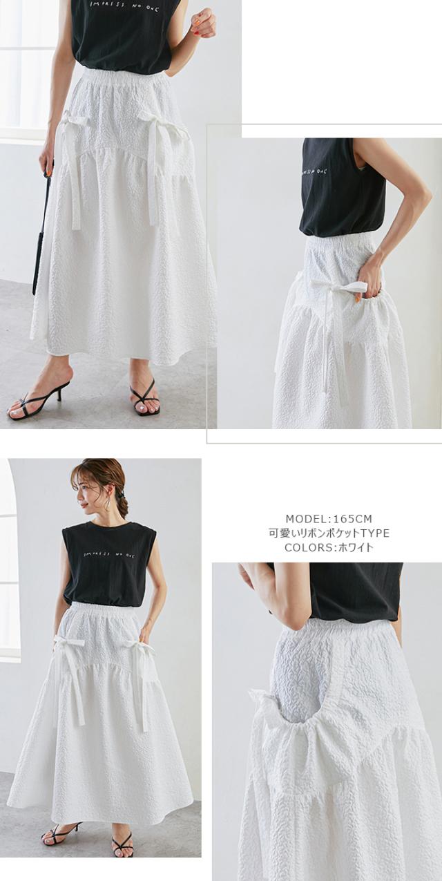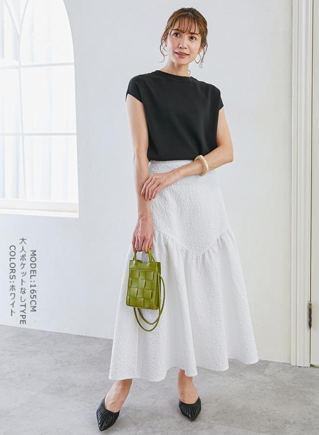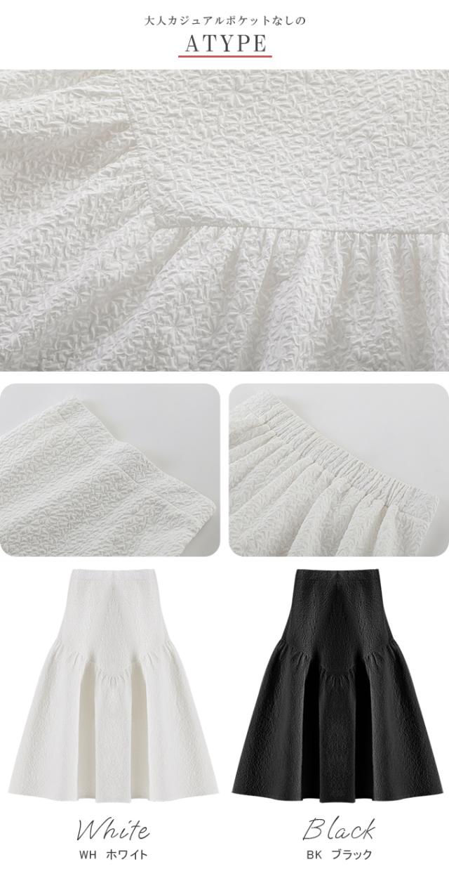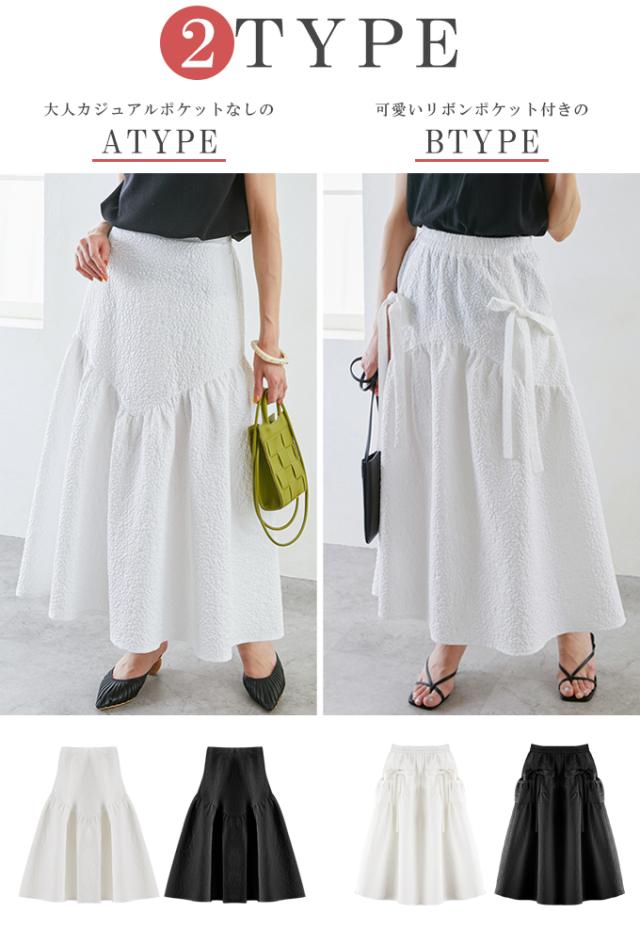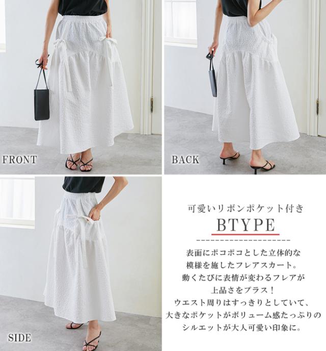 表面にポコポコとした立体的な模様を施したフレアスカート。 選べる2タイプ 大人カジュアルポケットなしのAタイプと可愛いリボンポケット付きのBタイプ。 動くたびに表情が変わるフレアが上品さをプラス! 大人カジュアルポケットなしのAタイプが裾にかけてボリュームのあるデザインで 甘さをおさえカジュアルな印象に。 ウエスト周りはすっきりとしていて、 可愛いリボンポケット付きのBタイプがボリューム感たっぷりのシルエットが 大人可愛い印象に。 ※モニター環境により多少色合いが異なりますので、予めご了承くださいませ。 |