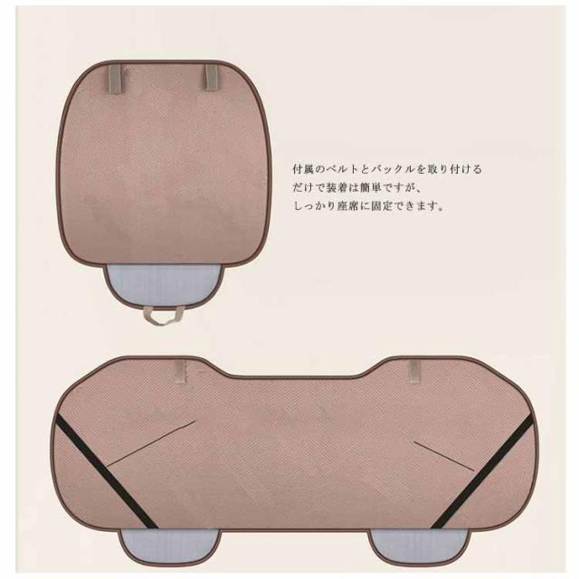 | 車用シートカバー3枚セット 前座席用2枚*後部座席用1枚 リネン調の素材で通気性に優れているため、汗による蒸れや不快感をおさえます。 スマホや小物などを収納できるポケット付き 裏面には滑り止め加工も施されており、運転中に姿勢を調整してもシートが滑り落ちません。 付属のベルトとバックルを取り付けるだけで装着は簡単ですが、しっかり座席に固定できます。 軽自動車から普通車まで、ほとんどの車種に対応しています。 どんな車内インテリアにもマッチするユニセックスデザインが魅力です。 | |