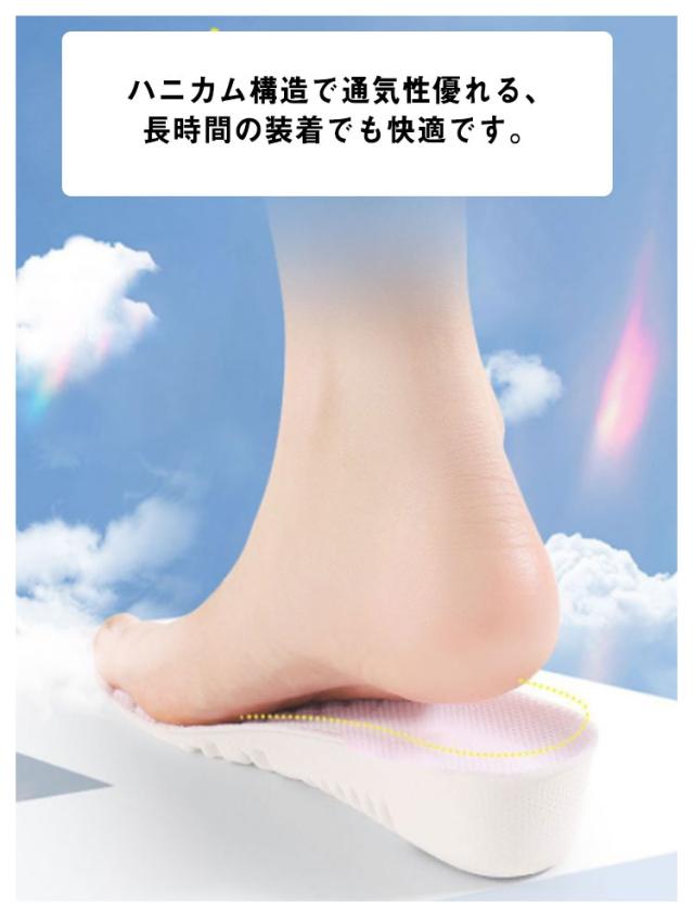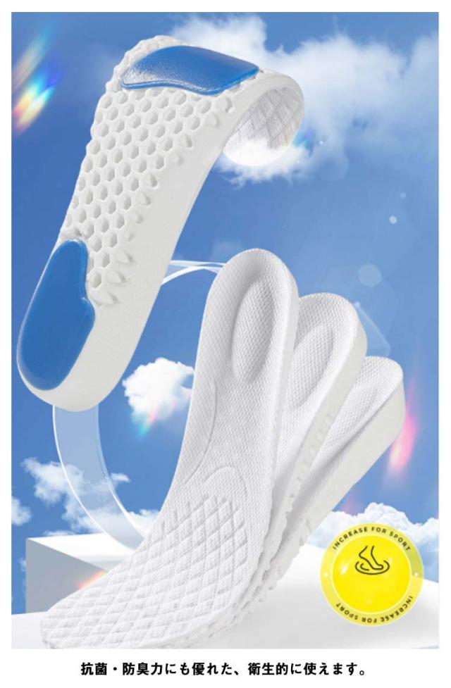 | 身長が1.5-3.5cmアップできるスポーツインソール! ハニカム構造で通気性優れる、長時間の装着でも快適です。 抗菌・防臭力にも優れた、衛生的に使えます。 性別、年齢問わず使用でき、かかとの衝撃を吸収して、痛みや疲れを軽減させる便利グッズです。 スニーカー、革靴など、どんな靴にも対応します。 | |