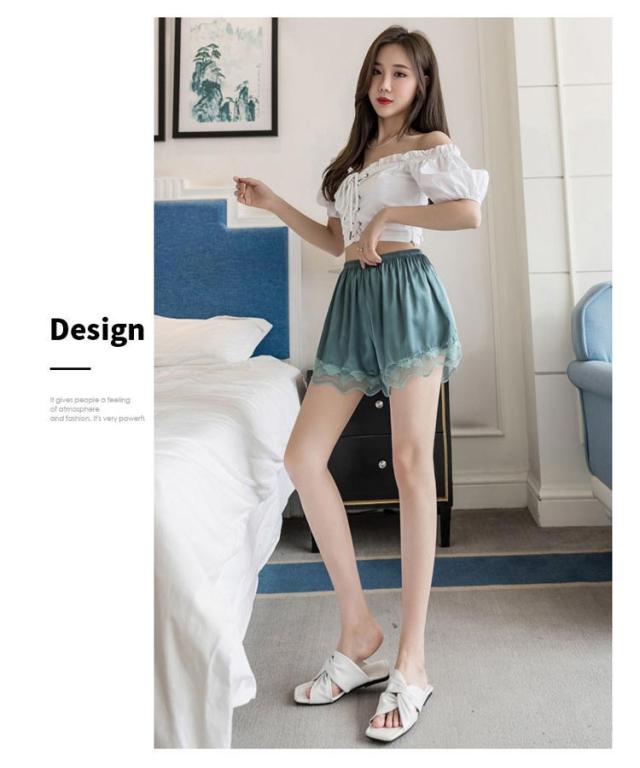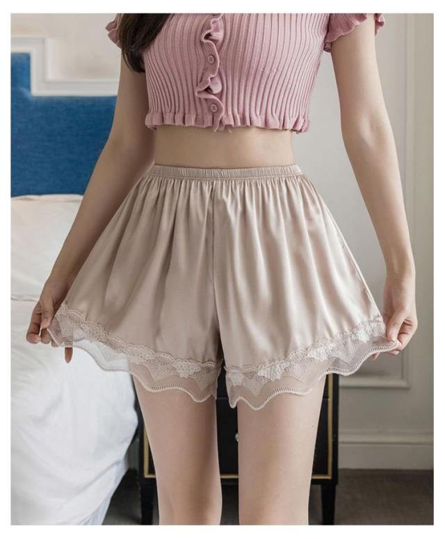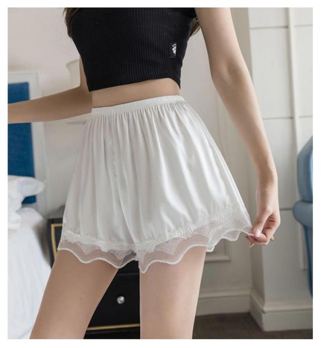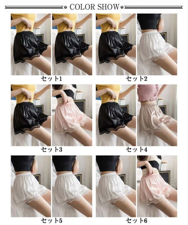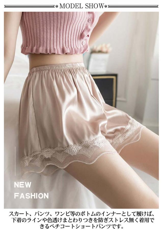 ペチパンツ レース 2枚セット インナーパンツ ショート 膝上 透け防止 レディース ペチコート パンツ ショートパンツ ルームウエア 裾レース シンプル サテン 冷感 大きいサイズ ナチュラル 白 黒 ピンク ブラウン 【送料無料】