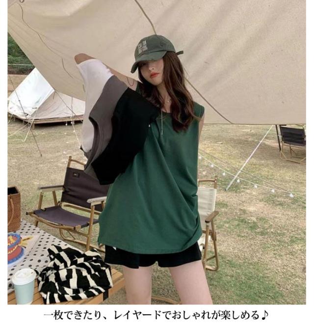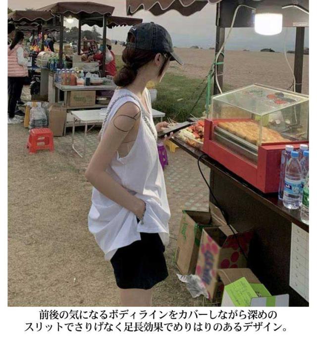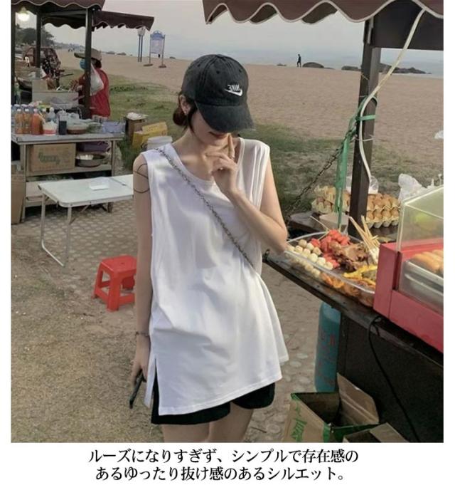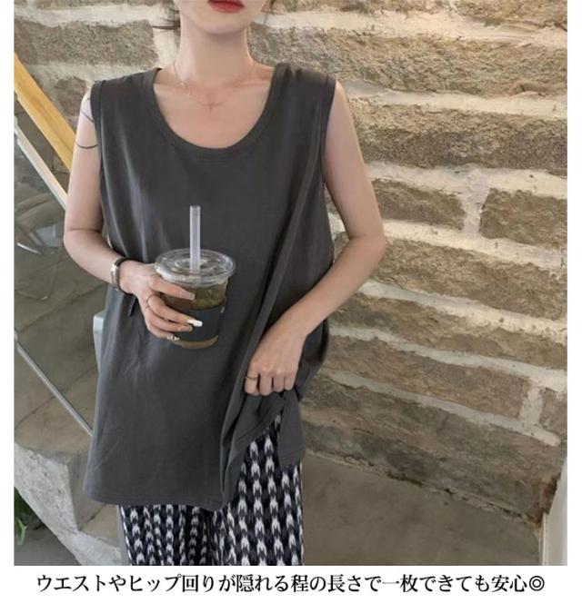 タンクトップ インナー サイドスリット入り ロング レイヤード tシャツ 付け裾 つけ裾 スリットレイヤード トップス ノースリーブ tシャツ スリット ロング丈 レディース 綿 無地 白 黒 つけ裾 大きいサイズ コーディネート 無地