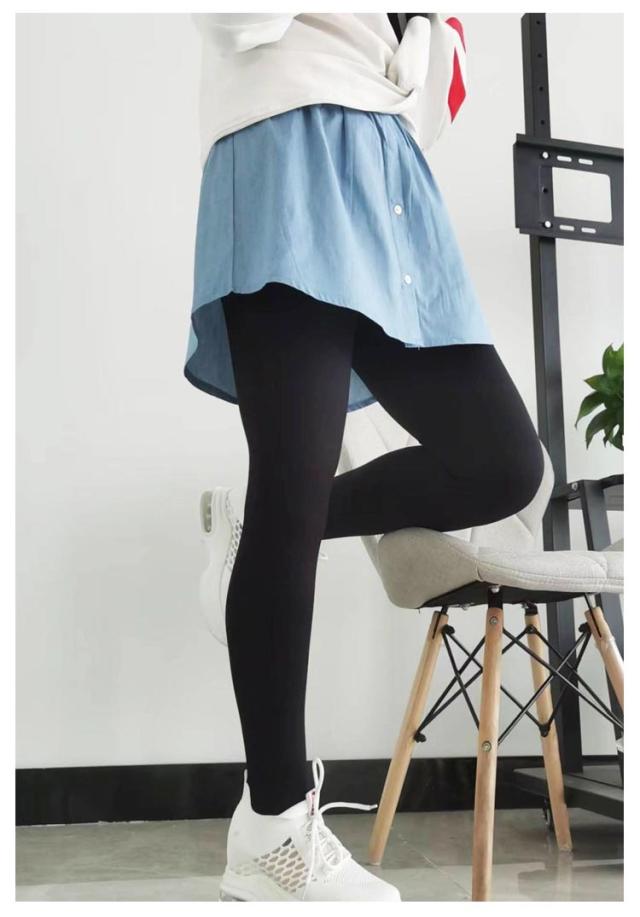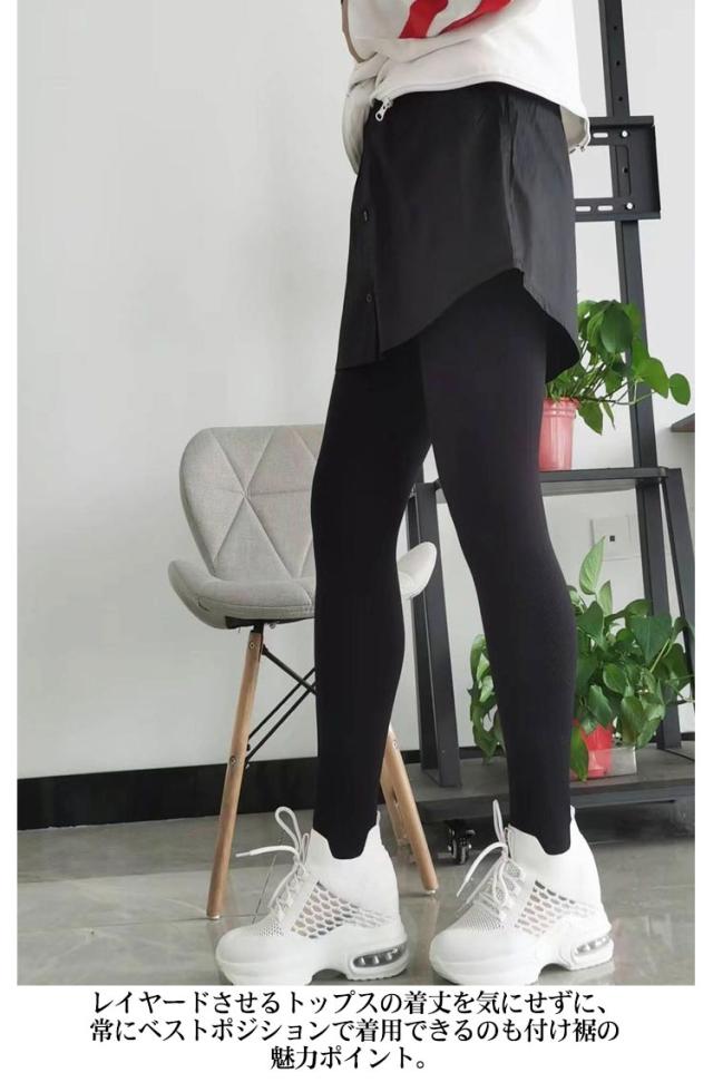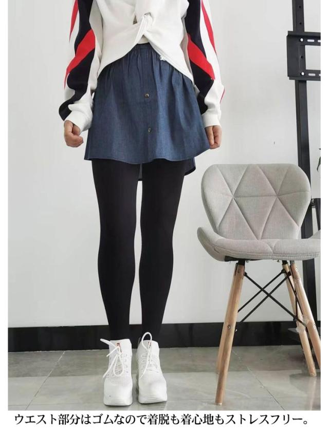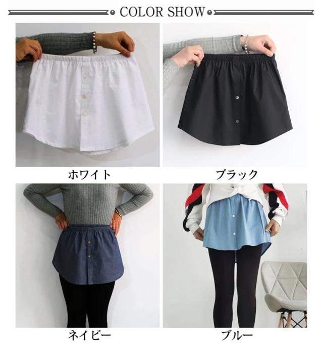 付け裾 デニム風 レイヤード シャツ生地 レディース 春 夏 秋 冬 重ね着 つけ裾 インナー ゴムウエスト ラウンド裾 レイヤードインナー レイヤードトップス ブラック 黒 ブルー 大きいサイズ S M L XL 2XL 【送料無料】