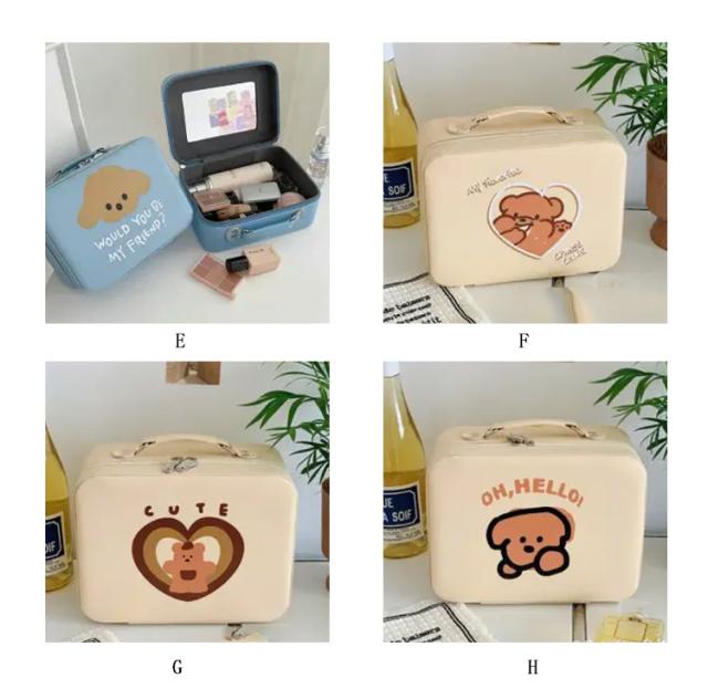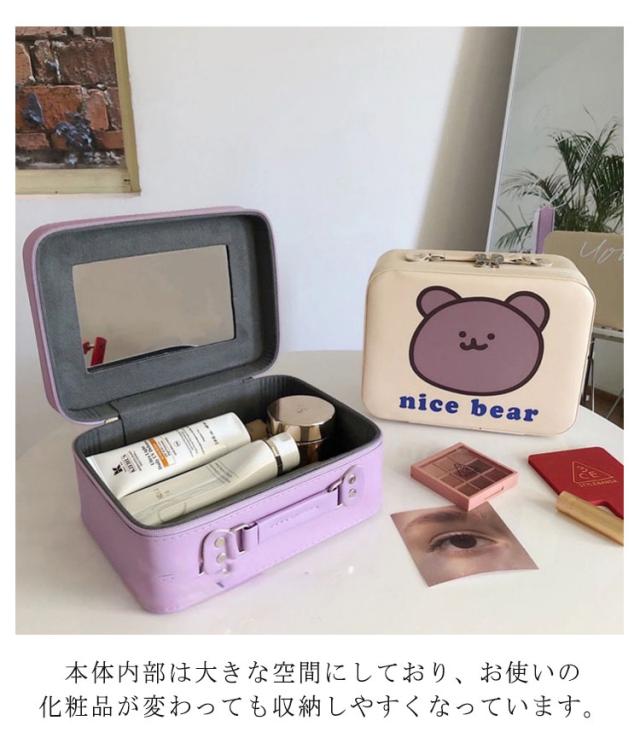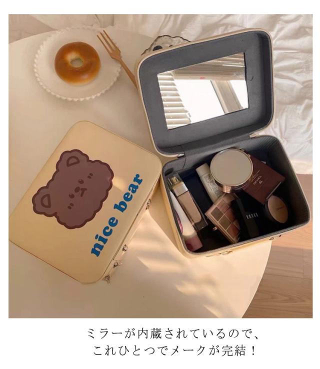 かわいいメイクボックス アニマル柄 コスメボックス 鏡付き ミラー付き 持ち運び 大容量 クマ ウサギ いぬ フラワー かわいい コスメケース 化粧ボックス 化粧箱 しっかり 頑丈 収納 メイクブラシ収納 化粧品収納 持ち運び 旅行