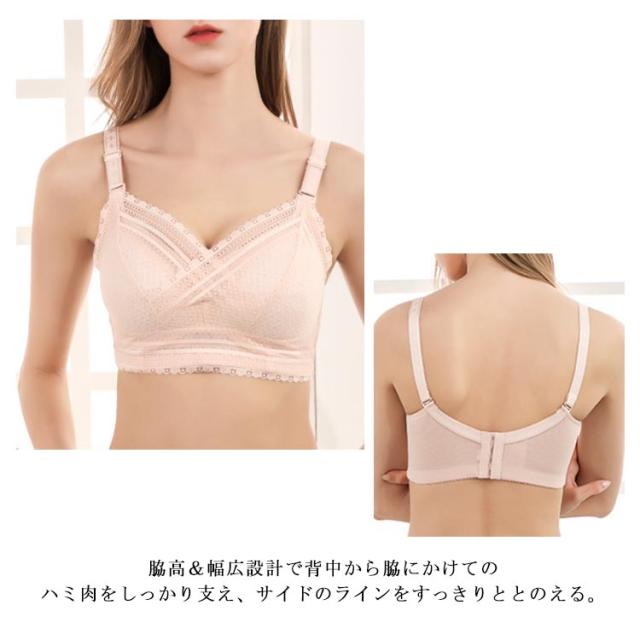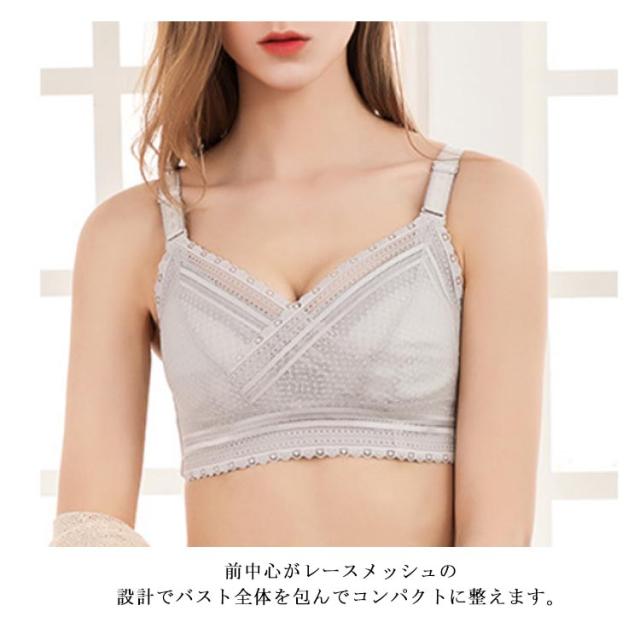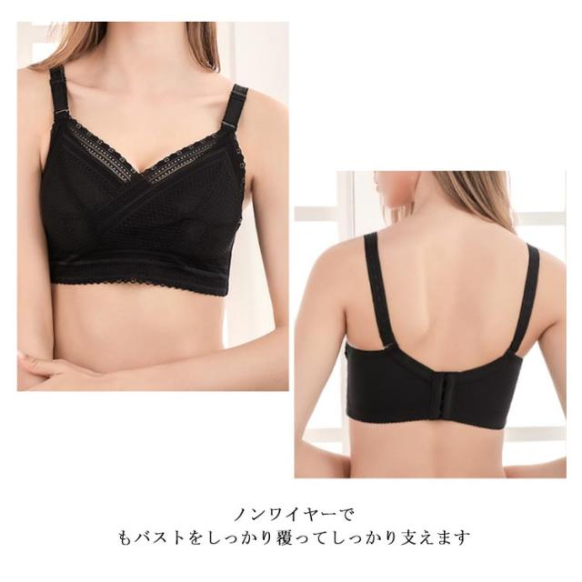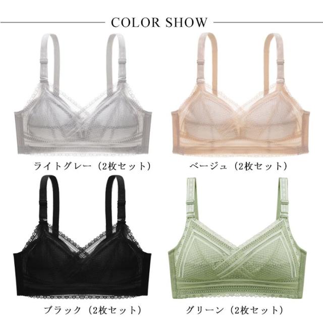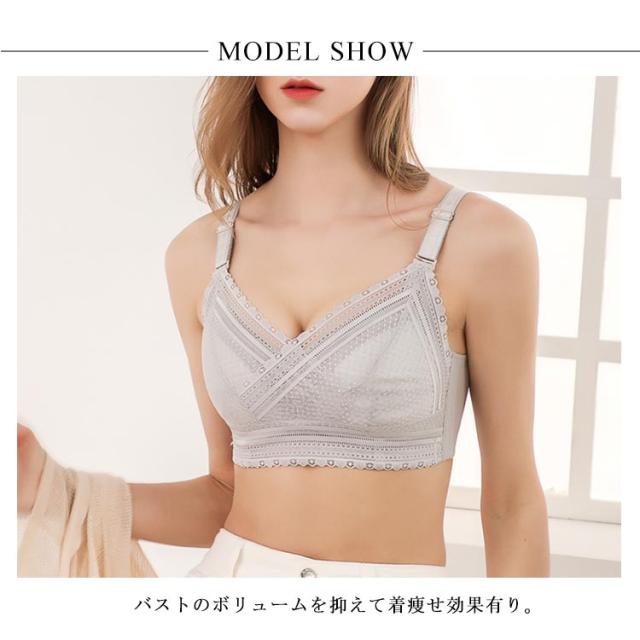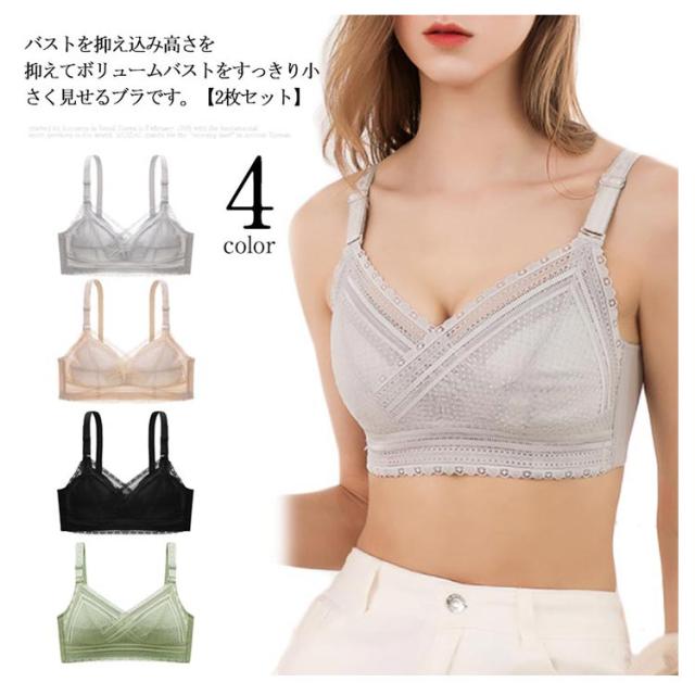 胸を小さく見せるブラ 2枚セット ノンワイヤー 胸 小さく 見せる ブラ ブラジャー レース 補正下着 フルカップ 薄手カップ 75 80 85 90 C D 脇高 背中 脇肉 スッキリ 胸元カバー 着?せ 30代 40代 50代 おしゃれ シンプル 【送料無料】