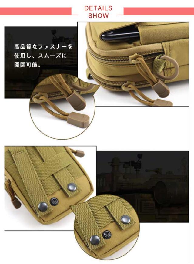 | ◆持ち歩いても負担が少ない軽量かつ高耐久のオックスフォード生地を使用。 ◆防水性、耐久性にも優れています ◆メイン収納部分はジップ付きで安心。 ◆高品質なファスナーを使用し、スムーズに開閉可能。 ◆スマホやライト、モバイルバッテリー、メモ帳などがしっかり入れます。 ◆斜め掛け、ウェストポーチ、フックでベルトかけ様々な形で着用可能です。 ◆用途は作業用から普段使い、サイクリング、登山、アウトドア、スポーツ、サバイバルゲームまで活躍します。 | |