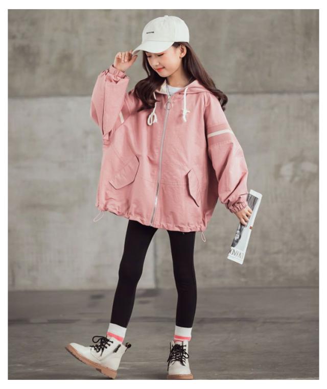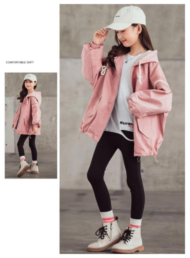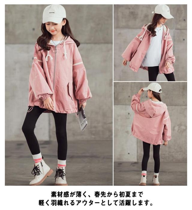 スプリングコート 女の子 ジャケット 子供 キッズ マウンテンパーカー フード付き ロング ジャンパー ウインドブレーカー 薄手 長袖 春 アウター ゆったり 送料無料 ジュニア 子供服 子ども服 こども服 春服 春秋 かわいい カジュアル 通学 120 130 140 150 160 170