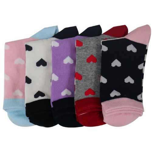 【送料込】 クルーソックスセット (ハートボーダー) (5色アソート) (23-25cm) (6足セット) / FNRJ