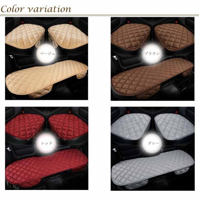 | 表面がなめらかで座り心地もGOOD♪ カーシートカバー3枚セット 表面が起毛した、やみつきになるような気持ちのいいなめらかな肌触りの生地です。 裏面には滑り止めが付いておりますのでズレにくくなっております。 中わた入りでふんわりした座り心地す。長時間の運転でも疲れにくいです。 スマホや小物などを収納できるポケット付き | |