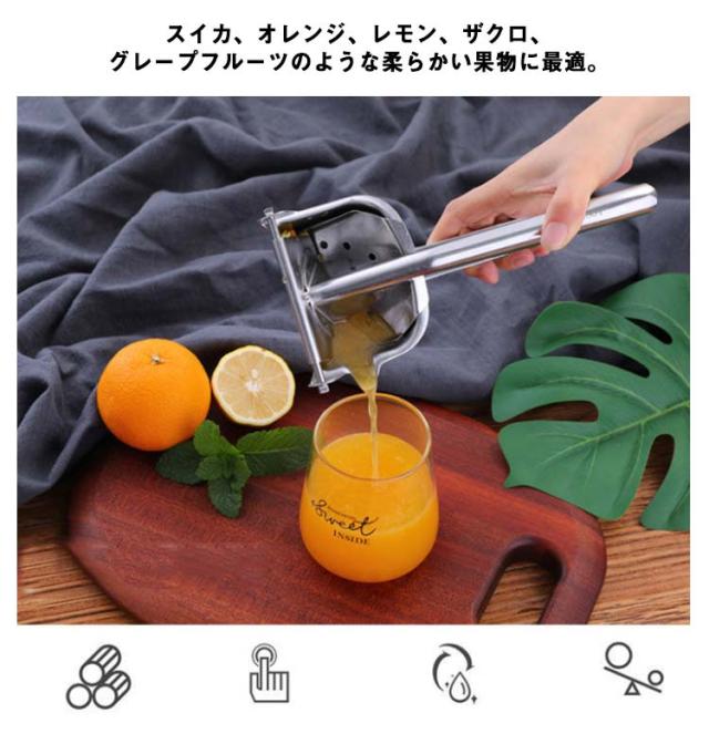 | オレンジ、ザクロ、グレープフルーツなど手軽に生絞りジュース スイカ、オレンジ、レモン、ザクロ、グレープフルーツのような柔らかい果物に最適。 | |