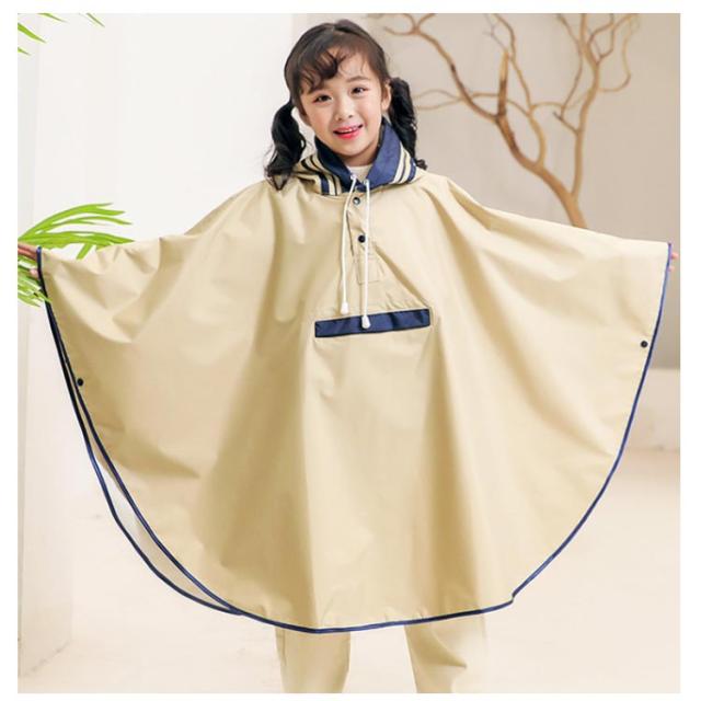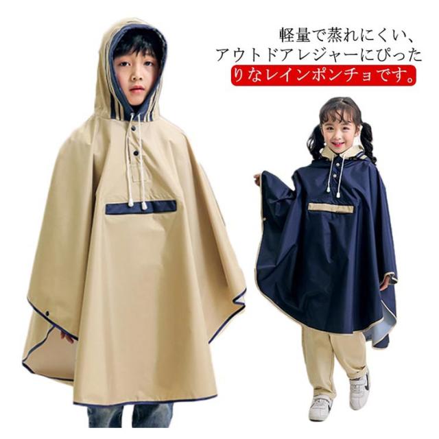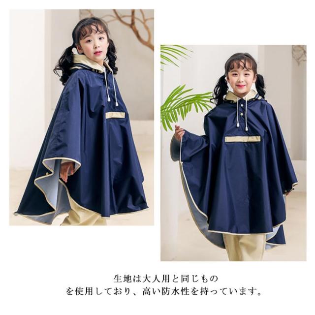 キッズ レインウェア レインコート ポンチョ カバー 雨合羽 ランドセル対応 防水 防風 通学 子供 女の子 男の子 小学生 雨具 収納袋付き 梅雨対策 自転車 リュック対応 ポケット付き レインウェア ネイビー 紺 90 100 110 120 130 140 【送料無料】