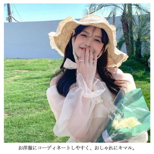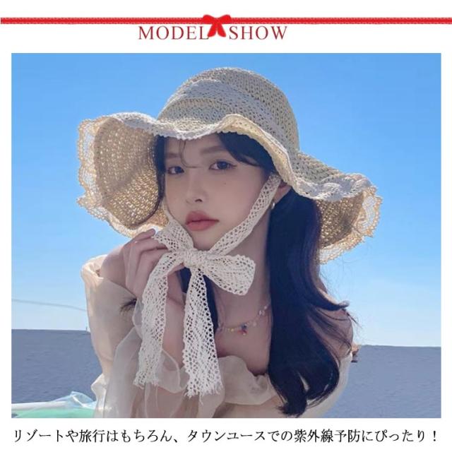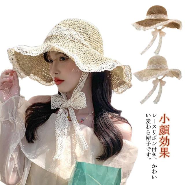 麦わら帽子 帽子 レディース UVカット ストローハット 折りたたみ レースひも 麦わら帽 つば広 ハット 大きいサイズ 帽子 UVハット 夏 小顔効果 日よけ 20代 30代 40代 ナチュラル 森ガール 可愛い