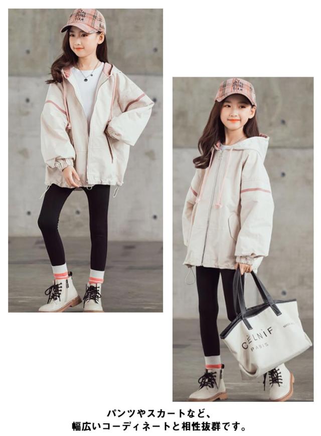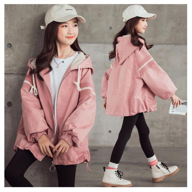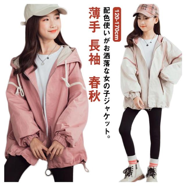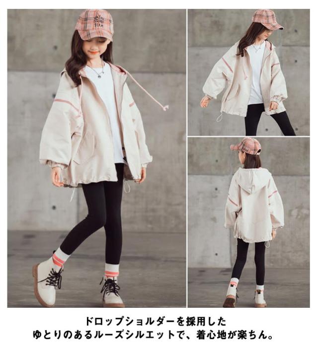 スプリングコート 女の子 ジャケット 子供 キッズ マウンテンパーカー フード付き ロング ジャンパー ウインドブレーカー 薄手 長袖 春 アウター ゆったり 送料無料 ジュニア 子供服 子ども服 こども服 春服 春秋 かわいい カジュアル 通学 120 130 140 150 160 170