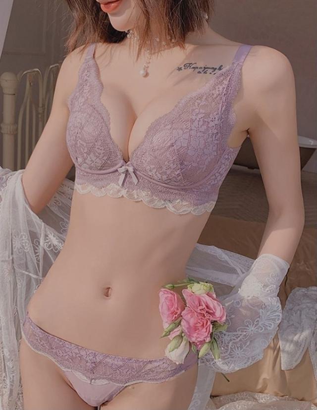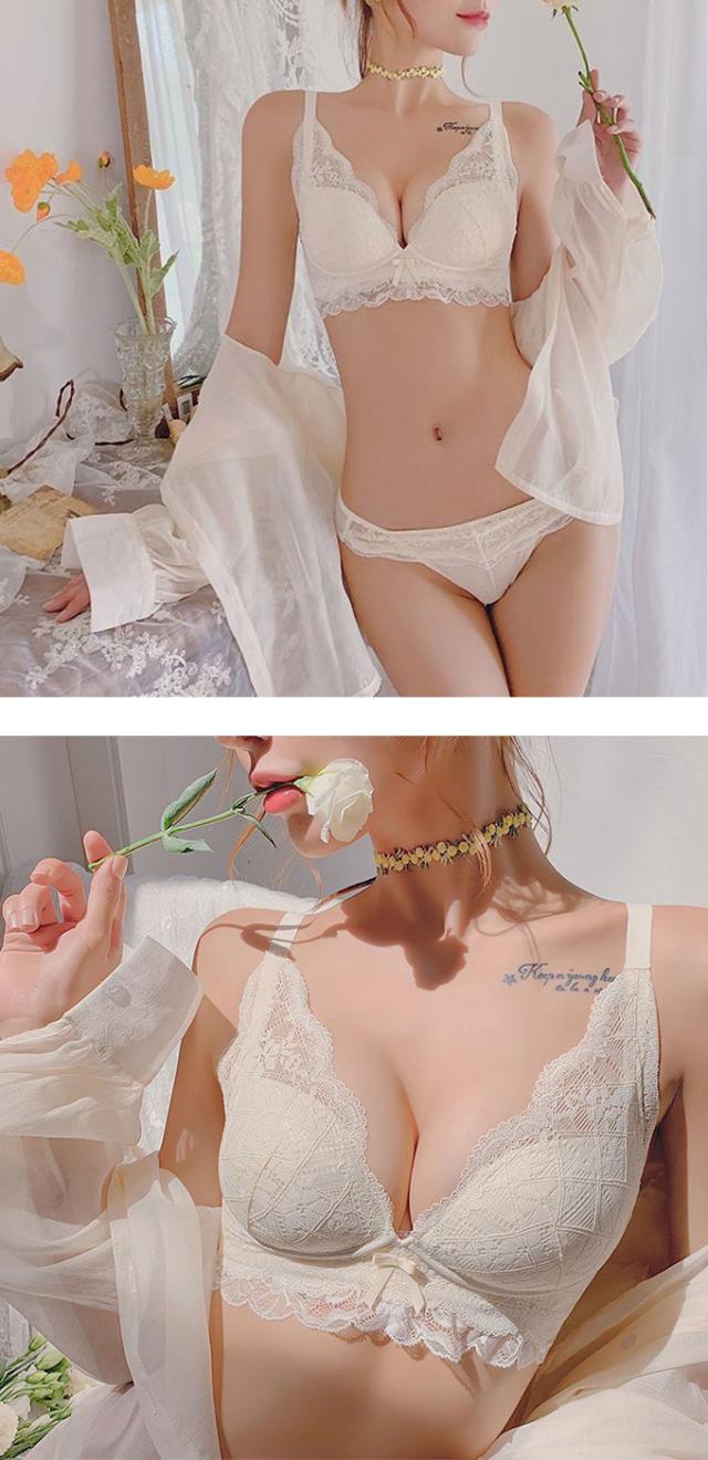 ノンワイヤーブラショーツセット ブラジャー ショーツ セット ノンワイヤー インナー レースブラ 盛れる 谷間メイク