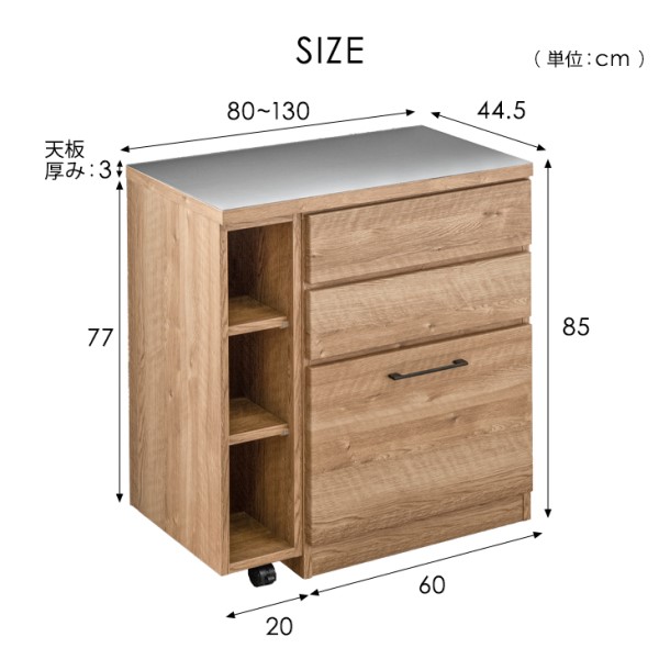■サイズ 外寸:幅80〜130x奥行44.5x高さ85cm