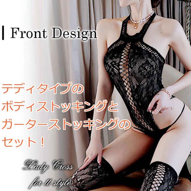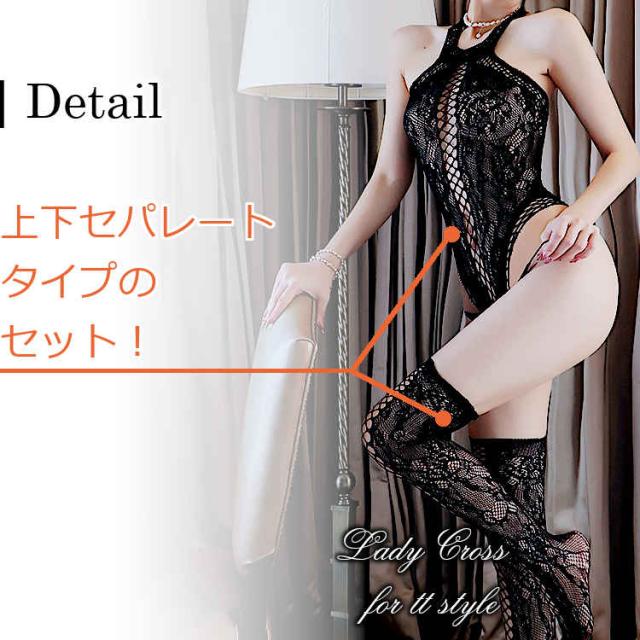 シースルーブラックを基調にしたセクシーボディストッキング。