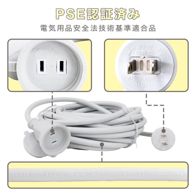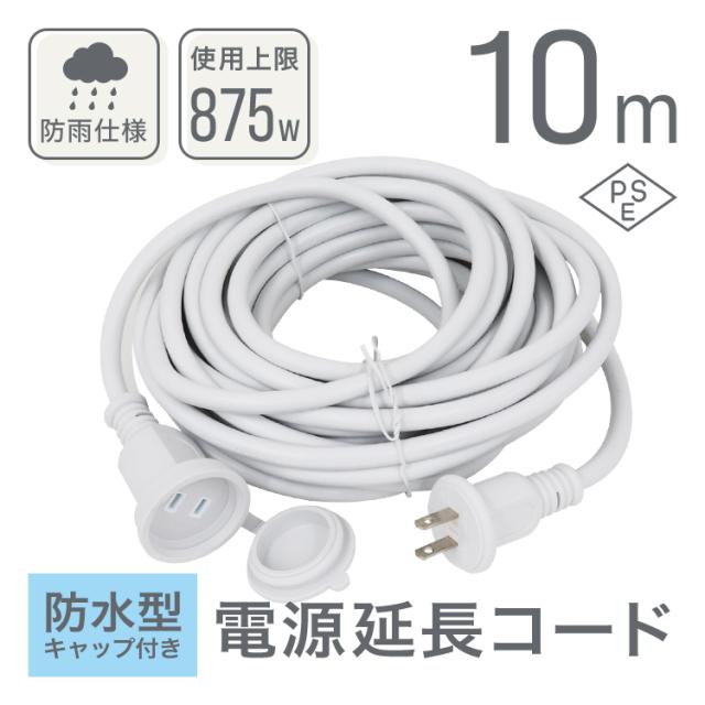 延長コード 10m 屋外 防水 電源コード 電源延長コード 防雨 防滴 キャップ付き 延長 コード コンセント ホワイト 白 イルミネーション 電飾 除雪機 電動工具 ガーデニング イベント フェス 屋台 キャンプ アウトドア 庭