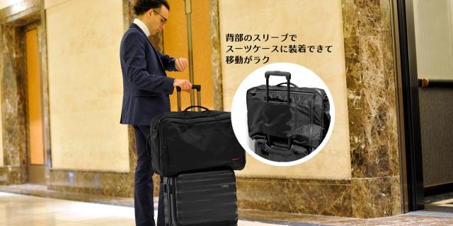 スーツケースに装着可能。2つ合わせれば長期出張にも対応