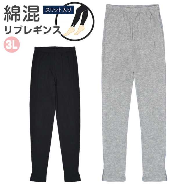 レギンス レディース 大きいサイズ スリット リブレギンス レギパン シンプル全2色