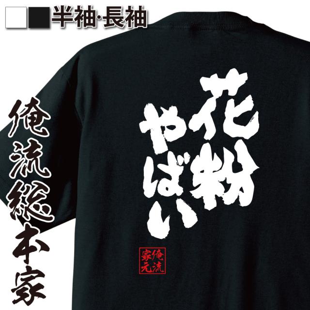 おもしろtシャツ 俺流総本家 魂心Tシャツ 【花粉やばい】花粉症 目かゆい 涙目 アレルギー 病気 スギ花粉 おもしろ雑貨 漢字 文字Tシャツ おもしろ プレゼント 面白 メッセージtシャツ 文字tシャツ 長袖 大きいサイズ