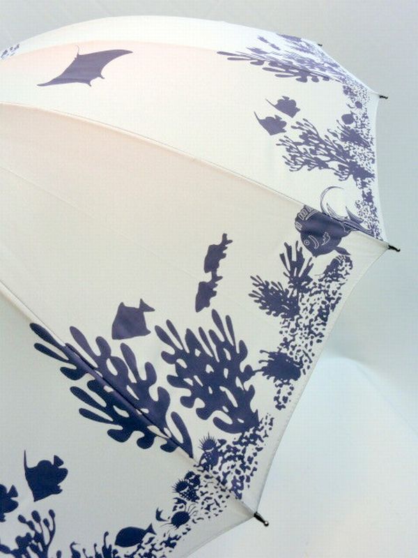 雨傘 傘 ファッション小物 レディースファッション 長傘 婦人 16本骨 珊瑚の海 タイ エイ いわしの大群 深海魚泳ぐ アクア 手開雨傘 【送料無料】