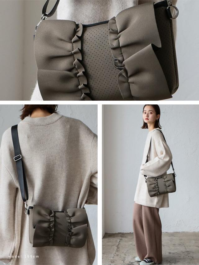 ネオプレーン2wayフリルショルダーバッグ【aroco/アロコ】