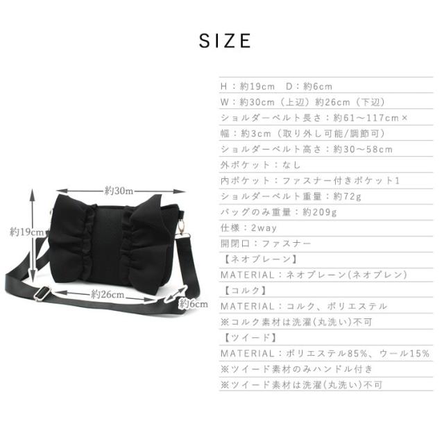 ヴィータフェリーチェ(VitaFelice)/ネオプレーン2wayフリルショルダーバッグ【aroco/アロコ】