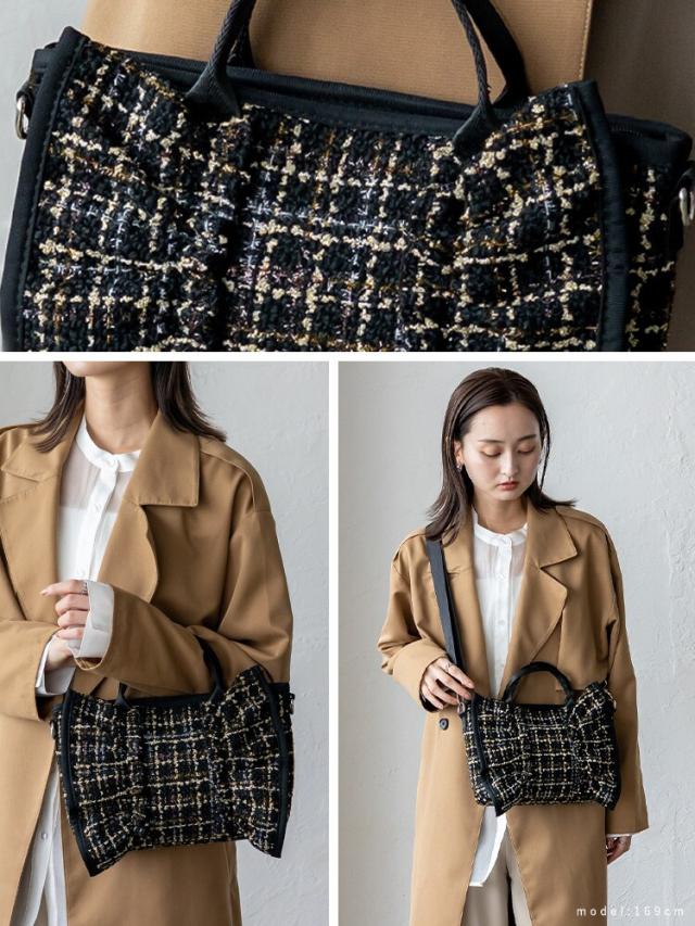 長さ調節可能なショルダーベルトで、肩掛け・斜めがけも可能。