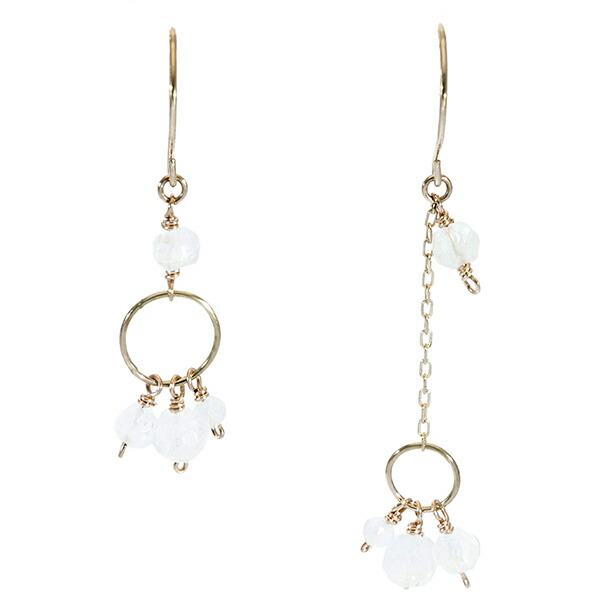 Irise coffret K10 ゴールド カット ブルームーンストーン アンシンメトリー ピアス 2P 両耳用 レディース 10金 10k フック ドロップ 揺れる ムーンストーン 天然石