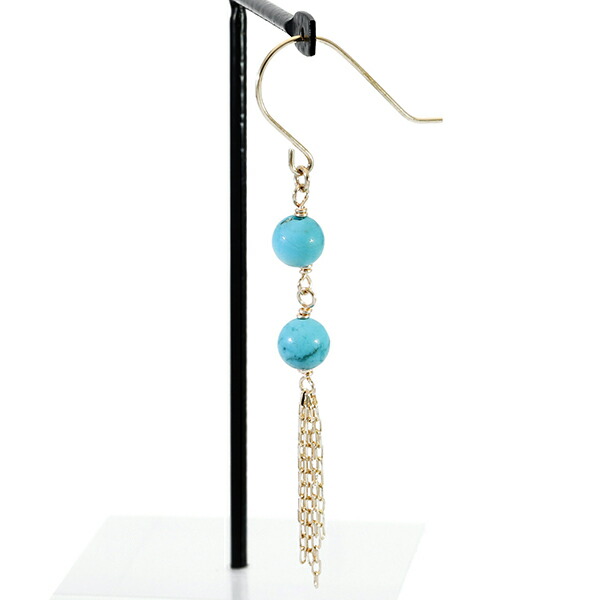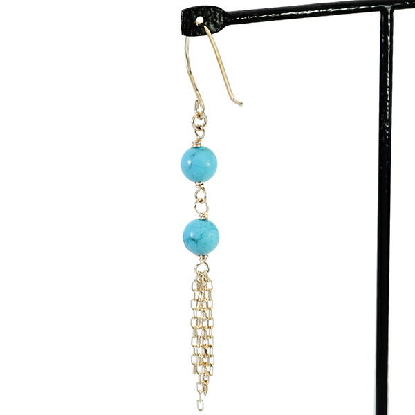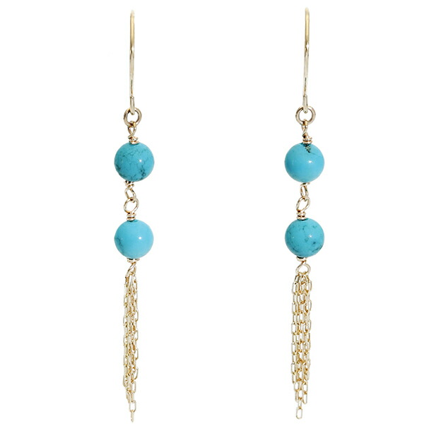 K10 ゴールド ターコイズ トルコ石 チェーン フリンジ ピアス(2P/両耳用)