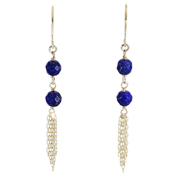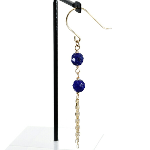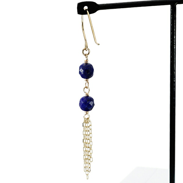K10 ゴールド カット ラピスラズリ チェーン フリンジ ピアス(2P/両耳用)