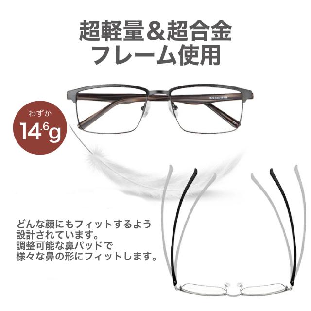 度数+0.25刻みで選べる!老眼鏡 ブルーライトカット シニアグラス おしゃれ レディース メンズ PCメガネ ブラック シルバー ブラウン 1822