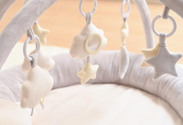 トイバーにはたくさんのトイをぶら下げることができます。ミラー付きのトイ、握るとパリパリ音が鳴るトイ、やさしい鈴の音がするトイなど、それぞれにお子さまが夢中になるような仕掛けが施されており、お子さまの好奇心や想像力が育ちます。