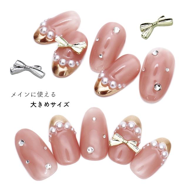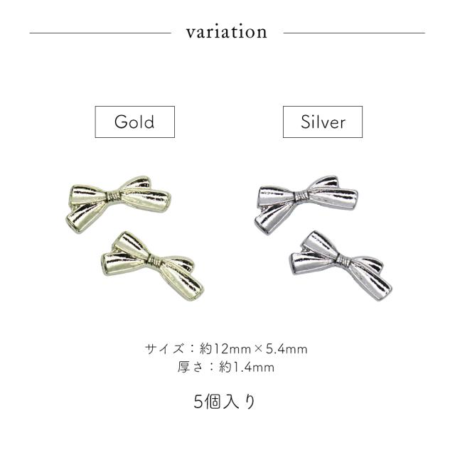 ネイルパーツ クールリボンパーツ [ゴールド/シルバー] 5個入り