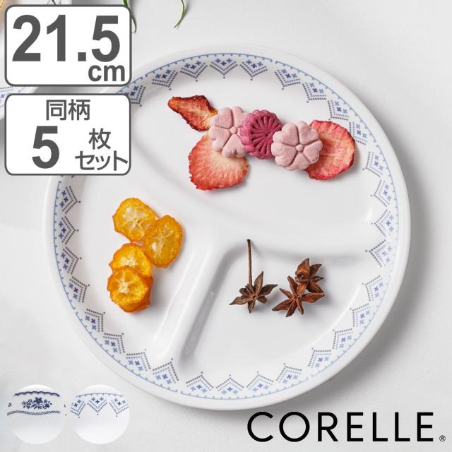 ランチプレート 26cm CORELLE コレール 強化ガラス 同柄5枚セット ( 食洗機対応 電子レンジ対応 オーブン対応 仕切り皿 ランチ皿 ワンプレート 汚れ 落ちやすい 丈夫 仕切り ランチ 朝食 丸 おしゃれ 上品 )