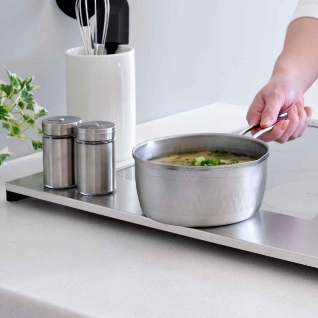ラックとして調味料をはじめ、お鍋やケトルなどを置く場所としても便利です。丈夫で耐熱・耐久性の高いステンレス製なので、調理直後の熱いお鍋も置くことができます。