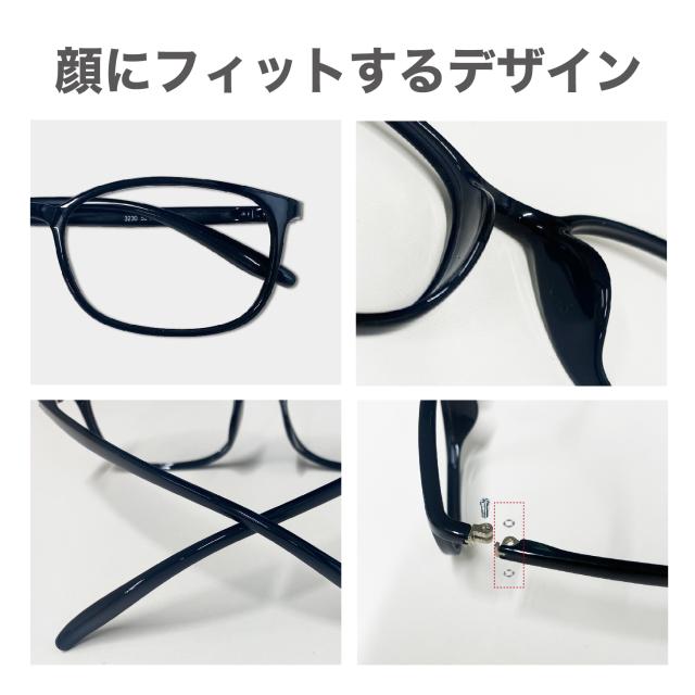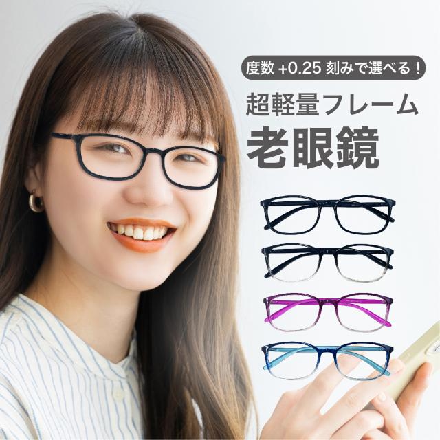 度数+0.25刻みで選べる!老眼鏡 ブルーライトカット シニアグラス おしゃれ レディース メンズ PCメガネ ブラック ブルー パープル クリアブラック 3230