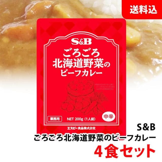 送料無料 メール便 S&B ごろごろ北海道野菜のビーフカレー 中辛 4食セット エスビー 業務用 レトルトカレー お試しセット 備蓄 保存食 非常食 キャンプにも!