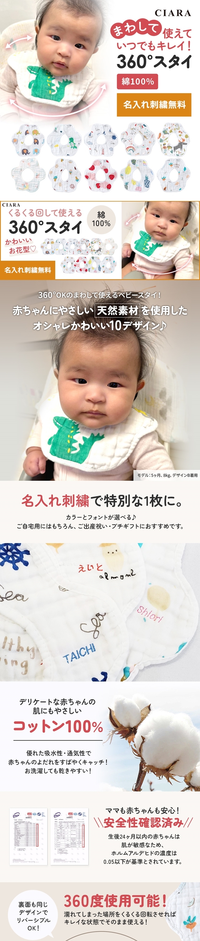 名入れ 刺繍 よだれかけ 涎掛け スタイ ベビースタイ 360度 360° キッズ 子供 未使用 ベビー 赤ちゃん 男の子 女の子 男女兼用 0歳 1歳 綿 綿100% リバーシブル 裏表 撮影 こどもの日 お宮参り ホワイトデー お返し 新生活 かわいい 可愛い おしゃれ キュート シンプル 春 夏 秋 冬 送料無料 保育園 幼稚園 お揃い お着替え 普段使い 入園 入園準備 入園準備セット 入園グッズ 入園セット 通園 お散歩 お出かけ 公園 安い 人気 イベント お祭り 子供会 町内会 ポイント消化 福袋 プレゼント プレゼント交換 お得 ギフト プチプラ プチギフト 内祝い 誕生日 CIARAポーチ雑貨屋 セール シアラ OEM 大量注文 ネスリーフ 2025 遅れてごめんね
