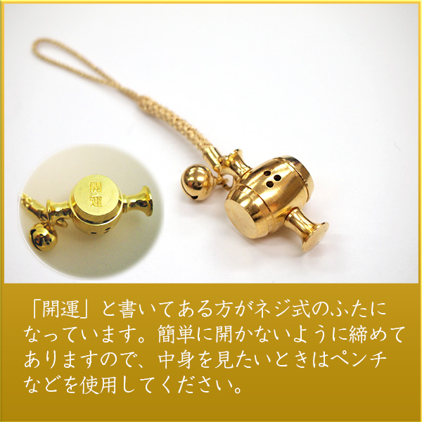 「開運」と書いてある方がネジ式のふたになっています。中身を見たいときはペンチなどを使用してください。