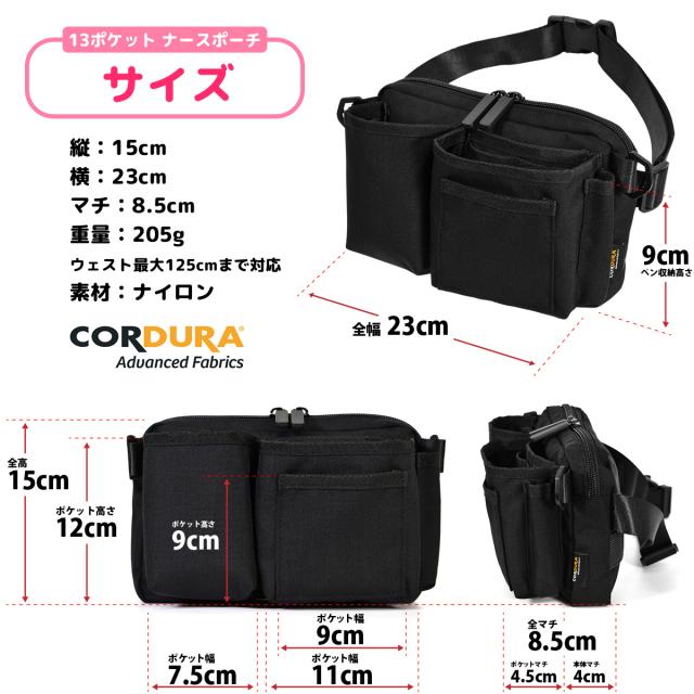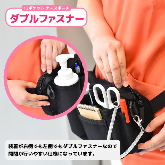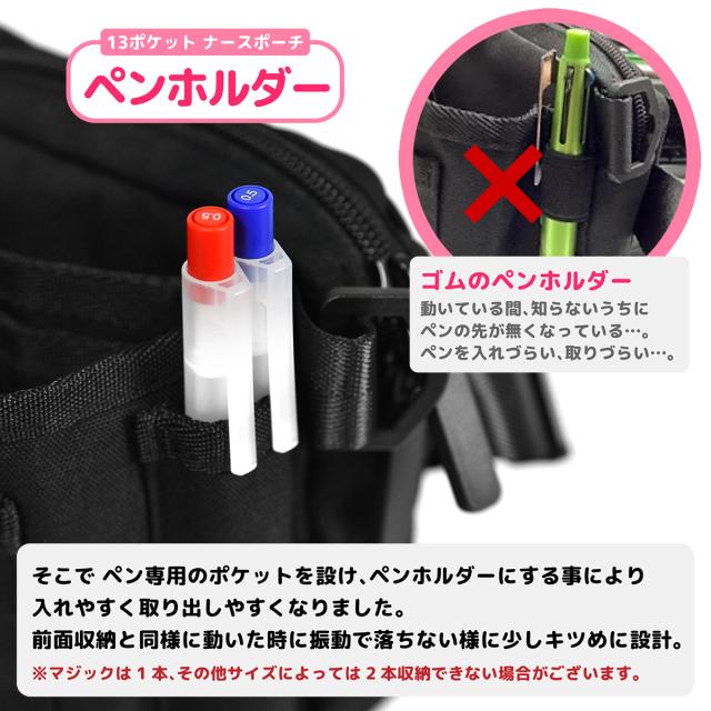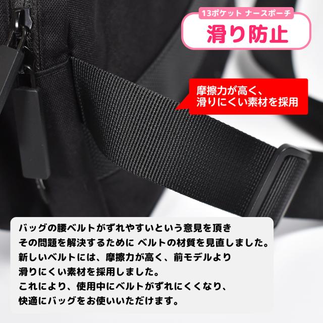 【改良版】収納力抜群 13ポケット ナースポーチ ウエストポーチ ウェストバッグ ナースグッズ 大容量 軽量 ペン収納 作業バッグ ショルダーバッグ エプロンバッグ 看護師 介護士 医療 倉庫内作業 作業用 仕事用 保育士 leylnp001