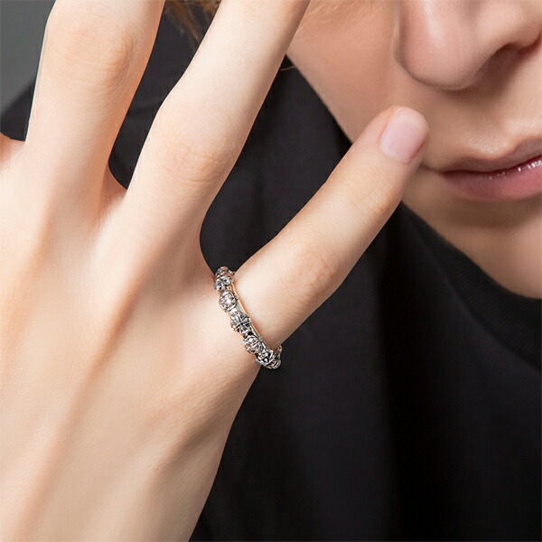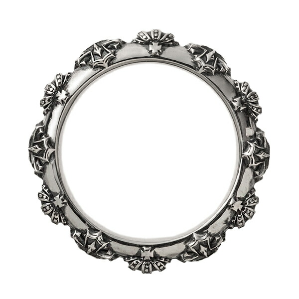 | 仕様 | クロスと王冠を交互に配置し、そのモチーフが周回したデザイン。ゴシックでゴージャスな印象。細部まで作り込まれたデザイン。程よいボリューム感で手元をオシャレに魅せてくれます。裏にはブランドと925の品質刻印。 |