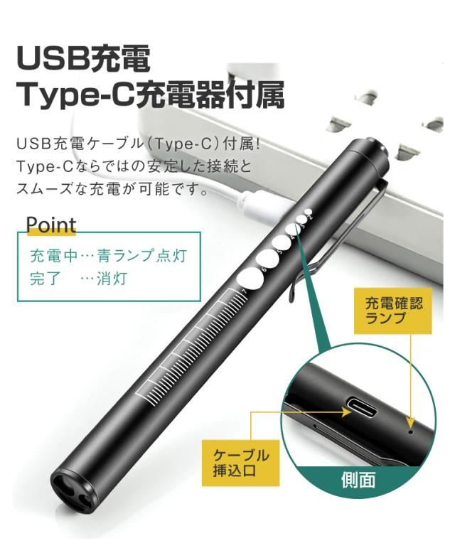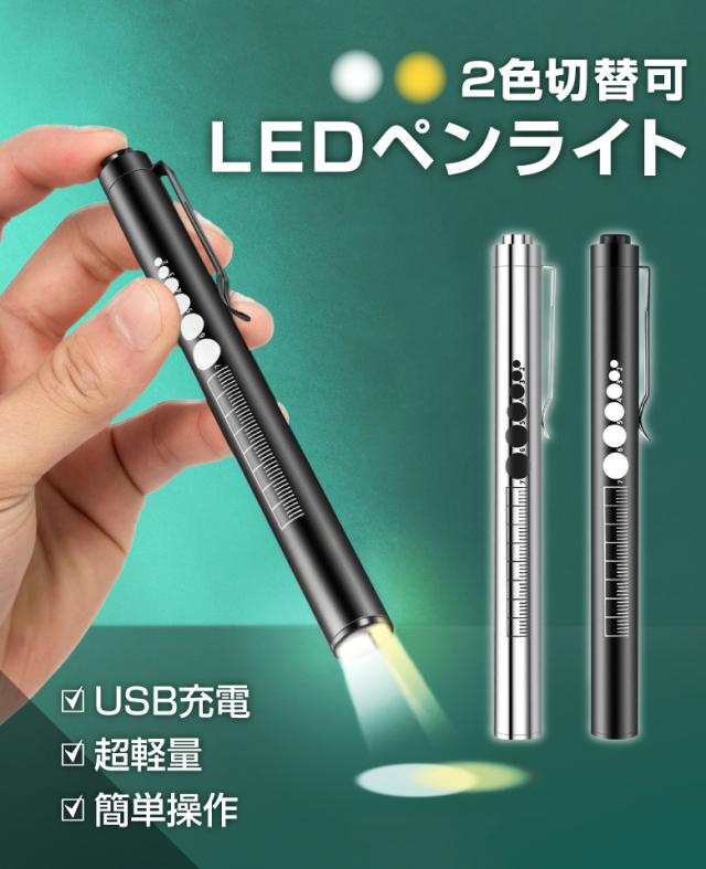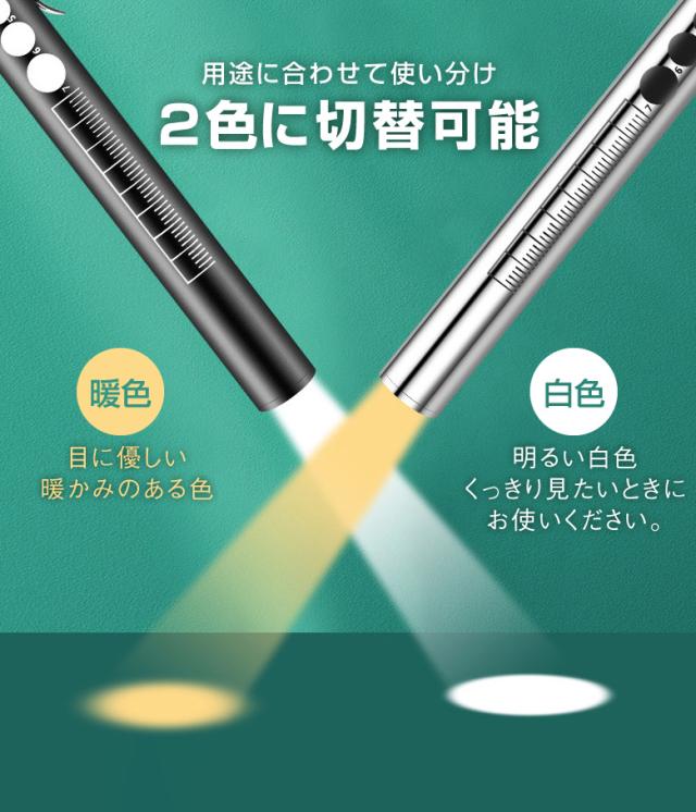 ペンライト 医療 医療用 LED USB充電 メディカル 歯科 歯科医 瞳孔 瞳孔計 看護師 看護 ナースグッズ ナースライト 懐中電灯 小型 介護 介護士 虫歯チェック 病院 デンタル 口腔 文具 検眼 2色切替 ノック式 定規メモリ付き 暖色 白色
