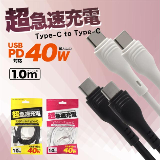 USB PD対応 40W 超急速充電可能 Type-C toType-Cケーブル 1m 100cm タイプc スマホ タブレット メール便送料無料